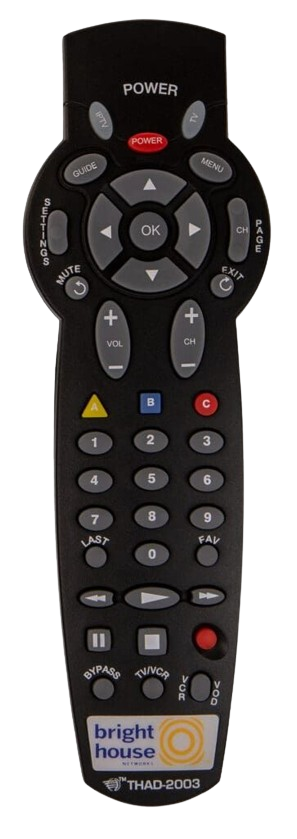 The SC-43 is a 43-button OEM remote control featuring a navigation pad and rocker keys for intuitive operation. Pictured example includes navigation keys with a center enter button, dedicated up and down keys, and numeric keypad placement. Several uniquely shaped keys allow for quick and easy visual identification.